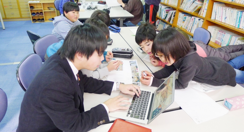 今日は、3人の大学生の人達にも手伝ってもらって、自分達で取材してきた写真や動画をつないで、ナレーションを録音し、CMの編集を行いました。