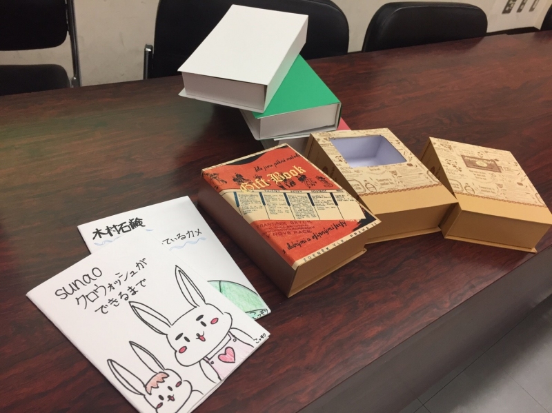 デザイナーさんがデザインしてくださったものから本型ギフトボックスのサンプルを自作しました!