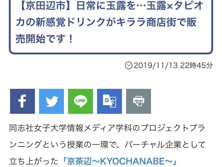 京田辺の特産品の一つである『玉露』と若者に馴染みのある『タピオカ』を組み合わせたドリンクの商品開発を行う。 「日常に玉露を…」をコンセプトに、このドリンクから若者に玉露を身近に感じてもらうことができると考えた。 主な活動としては玉露タピオカのオリジナルドリンクの考案・販売。 また、ターゲットを若者にしているので、若者が日常的に使用しているSNSを有効的に活用し、販売促進を測る。