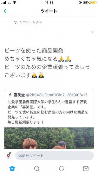 本日は、私たちの考えをしっかり聞いてくださり、商品という形にしてくださった企業様。お忙しい中、弊社のブースやプレゼンなどを、指導してくださり沢山のアドバイスをしてくださった先生、先輩方。私達の活動を応援してくださった皆さまに、感謝の気持ちを忘れず、本日は全力で喜笑堂の活動と魅力をお届けしてまいります!よくある本番前の言葉となってしまいましたが本心です。