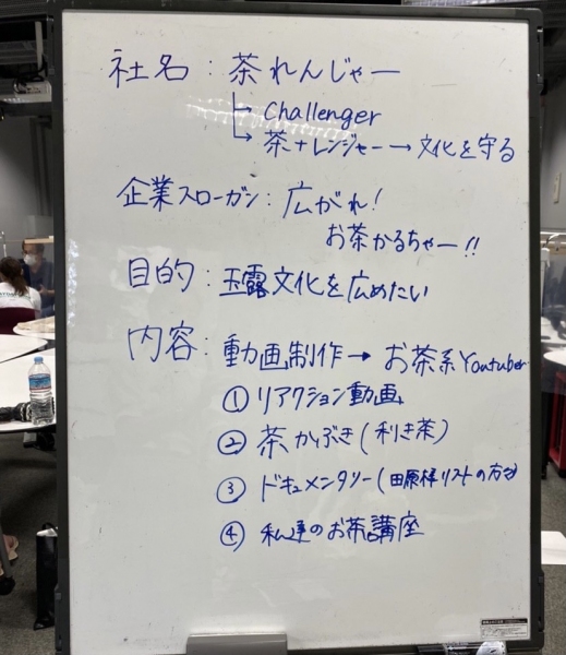 茶れんじゃーの活動をどのようにして伝えるのかを話し合い、「茶れんじゃー」としてのキャラクターを大切にしつつ発表をすることになりました。