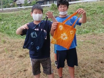 8月1日に西別院町犬甘野で行われた里山の恵みを届ける手仕事体験の草木染めに参加しました。玉ねぎ・すぎ・あい染めがあり、かばんをオレンジ色や青色に染められました。西別院小学校の紹介をし、他にも別の小学校や中学校の話も聞きました。