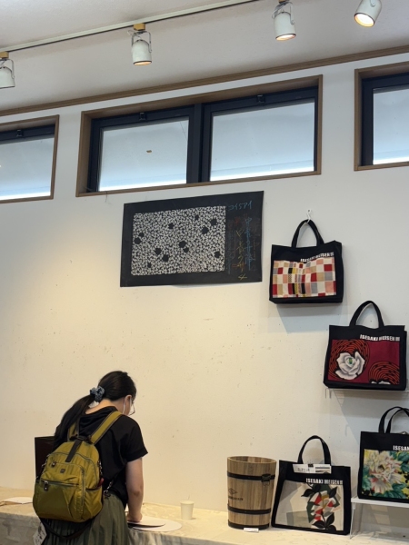 また、間近で生地の見た目や模様を観察することで、繊細な織りの技術や新しい工夫が込められていることを実感しました。伊勢崎銘仙が昔ながらの良さを守りながらも、時代に合わせて新商品なども作られていることを知り、とても感動しました。今回の学びを今後のワークショップや活動にも生かしていきたいと思います!
