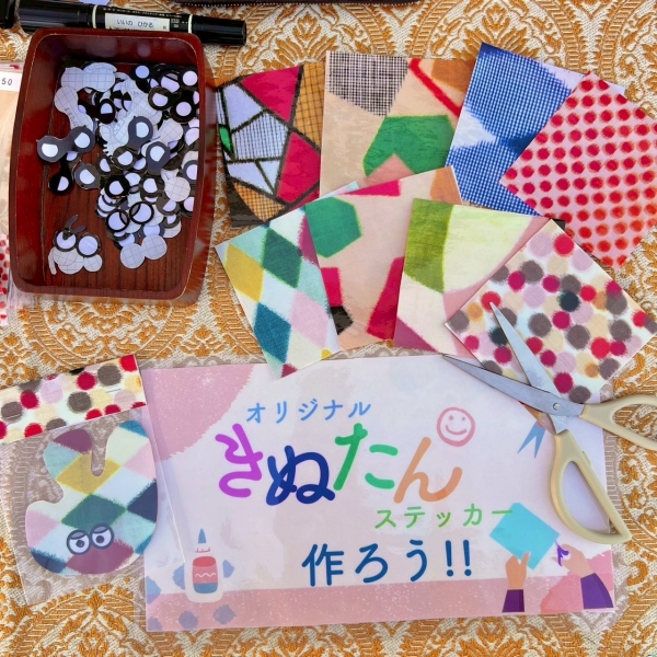 ワークショップでは、みんなユーモアあふれる発想で世界に一つだけのステッカーを作る様子が見られ、私たちもとても嬉しい気持ちになりました!また、作ったステッカーや「きぬたん」をその場で身につけてくれる方も多く、活動の手応えを実感しました!