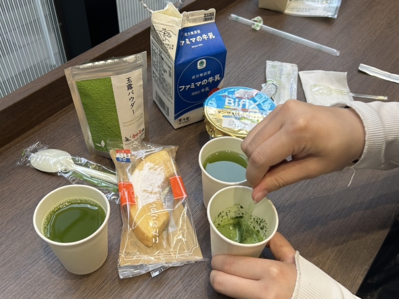 この日は、京田辺の玉露とコンビニで買ったスイーツやドリンクを使って、オリジナルのアレンジレシピを考えました。