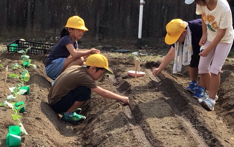 9月10日に、冬野菜の種まき・苗植えをしました。みんなで協力して冬野菜の種まきと苗植えをすることができました。冬野菜を収穫して食べるのが楽しみです。
