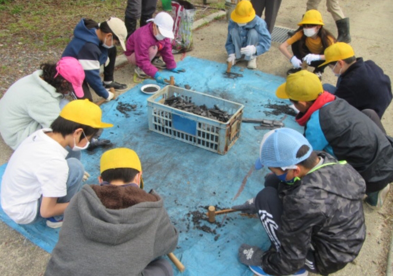 僕たちは野菜作りをする前に、土づくりから始めます。野菜作りをするために、栄養のある土が必要だからです。土に竹炭と落ち葉を混ぜて作ります。以前作った竹炭をハンマーで砕きました。竹炭を細かく砕くのが難しかったです。