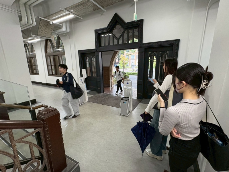 本日は午前中雨が降っていたので、先日に引き続き傘袋使用実態調査を行いました。啓発ポスターを傘袋機に貼った後での調査だったので、学生のマインドの変化とポスターの効果に期待したいものです。