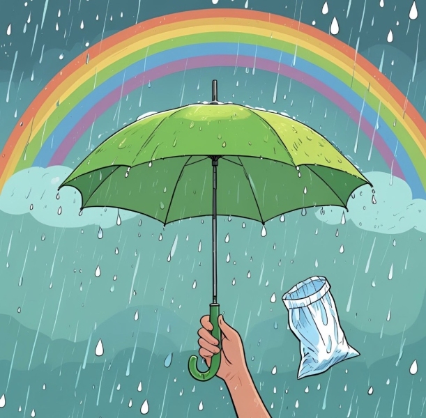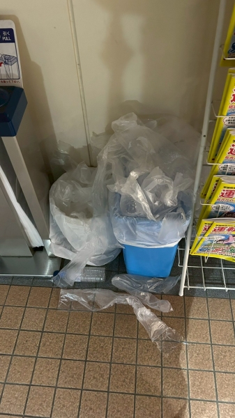 私たちはこんもりたまったこの傘袋をゼロにします。