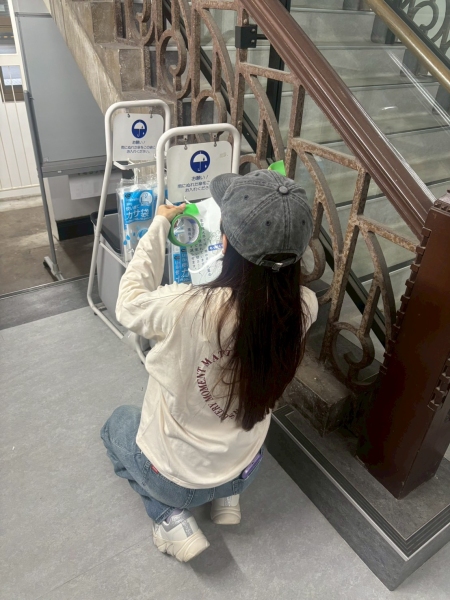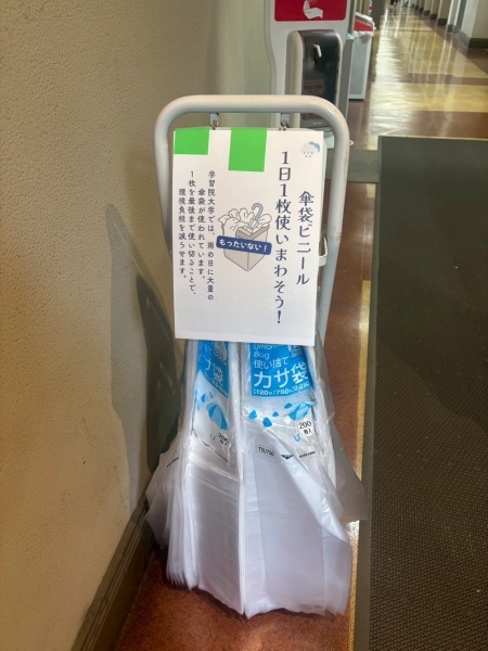 本日は、啓発ポスターを傘袋機に貼る作業を行いました。傘袋の使用の削減の啓発活動を行うためのポスターになります。実際に雨が降ってくれないと効果を得られないので、雨が降ってくれることを祈るばかりです。