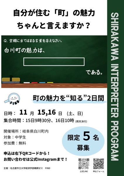 今回は白川町で行いましたが、横断的な学習や地元愛を育む必要性はどこでも必要なことであると感じるため、この活動をより広めたいと一層強く思いました。