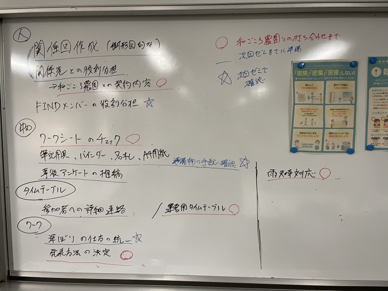 改めて確認することで、足りていない部分や備品の購入状況、当日の役割を再認識することができました。