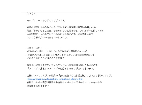 舞鶴アレルギーグルメマップに記載すると助かる表示について