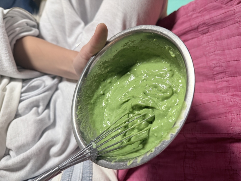 そして抹茶で味付けと色つけをしました。