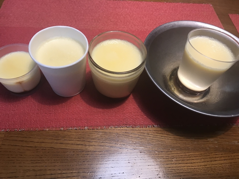 前回のプリンの試作品は少し水っぽかったけど、今回のプリンは全然水っぽくなかったです。