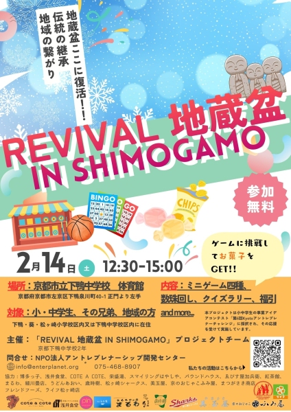 現代に地蔵盆を復活させる取り組みです。 従来の地蔵盆のお地蔵さんなどの伝統を守りつつ、大規模で開催し、多くの子どもに景品を持ち帰ったり、ゲームを行ったりして楽しんでもらえるような催しを企画しています。