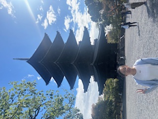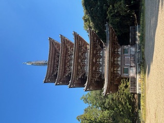 車で近くまで行くと、五重塔がどんどん迫ってくるような迫力があった。駐車場からもどこからも一目で見える存在。どうしてこんなに存在感があるのかと思ったら、高さが55mもあり、日本最高とのこと。境内のどこからでも見えたが、仏様が安置され作り込まれた内部まで見学できて感動した。
