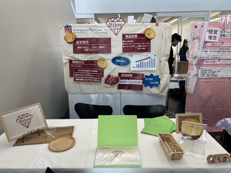 今回は、以前この授業で活動されていた先輩方が審査員として参加し、ブースの内容や接客を評価していただきました。