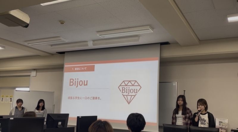 授業内で会社の進捗を発表する中間報告を行いました!!