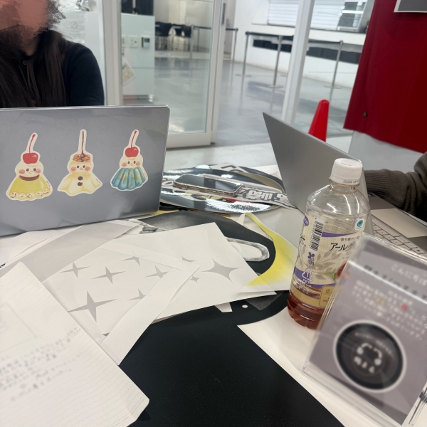 前回のブース練習を踏まえて、現在はブースを大工事中!テーブルに置くスタンドやチラシなど、細かな備品もどんどん制作しています。