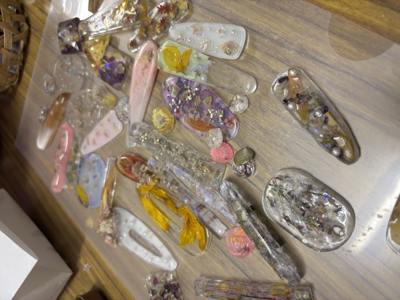 私たちが制作した押し花を使用し、ヘアピンやストラップ、ブローチ、指輪などのアクセサリー💍を制作しました✨