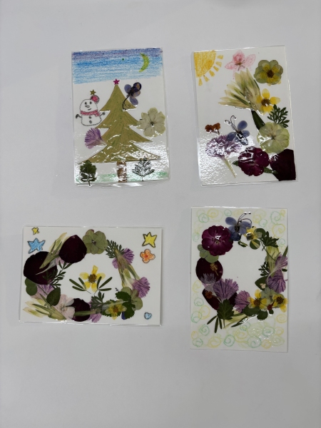 今回は押し花やドライフラワー、スパンコールなどを使用し、自分だけのクリスマスカードの制作をしました!
