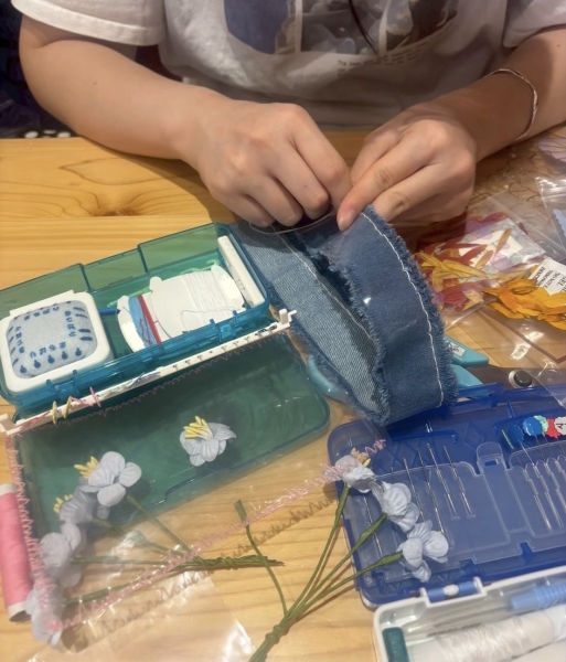 家にある布地やボタン、着なくなった衣服などを持ち寄って自分たちのイメージしていた小物ケースやストラップを形にしました🎶
