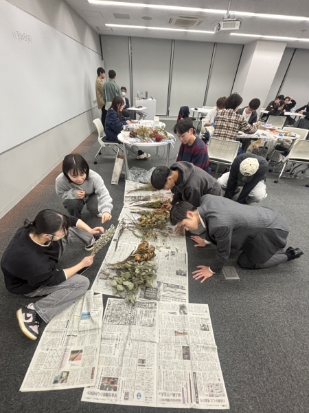 また、お花の仕分け作業も行い、これまで制作した押し花やドライフラワーを持ち寄って、各ワークショップのテーマに合うお花を選びました!!