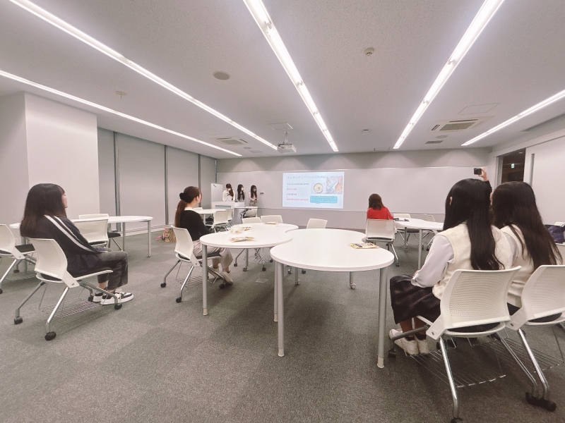 中日メディアブレーンの方にお越しいただき、「きしめんチップスのSDGsへの取り組み」についてプレゼンテーションを行いました。併せて、授業で実施している活動内容についてのインタビュー取材も受けました。